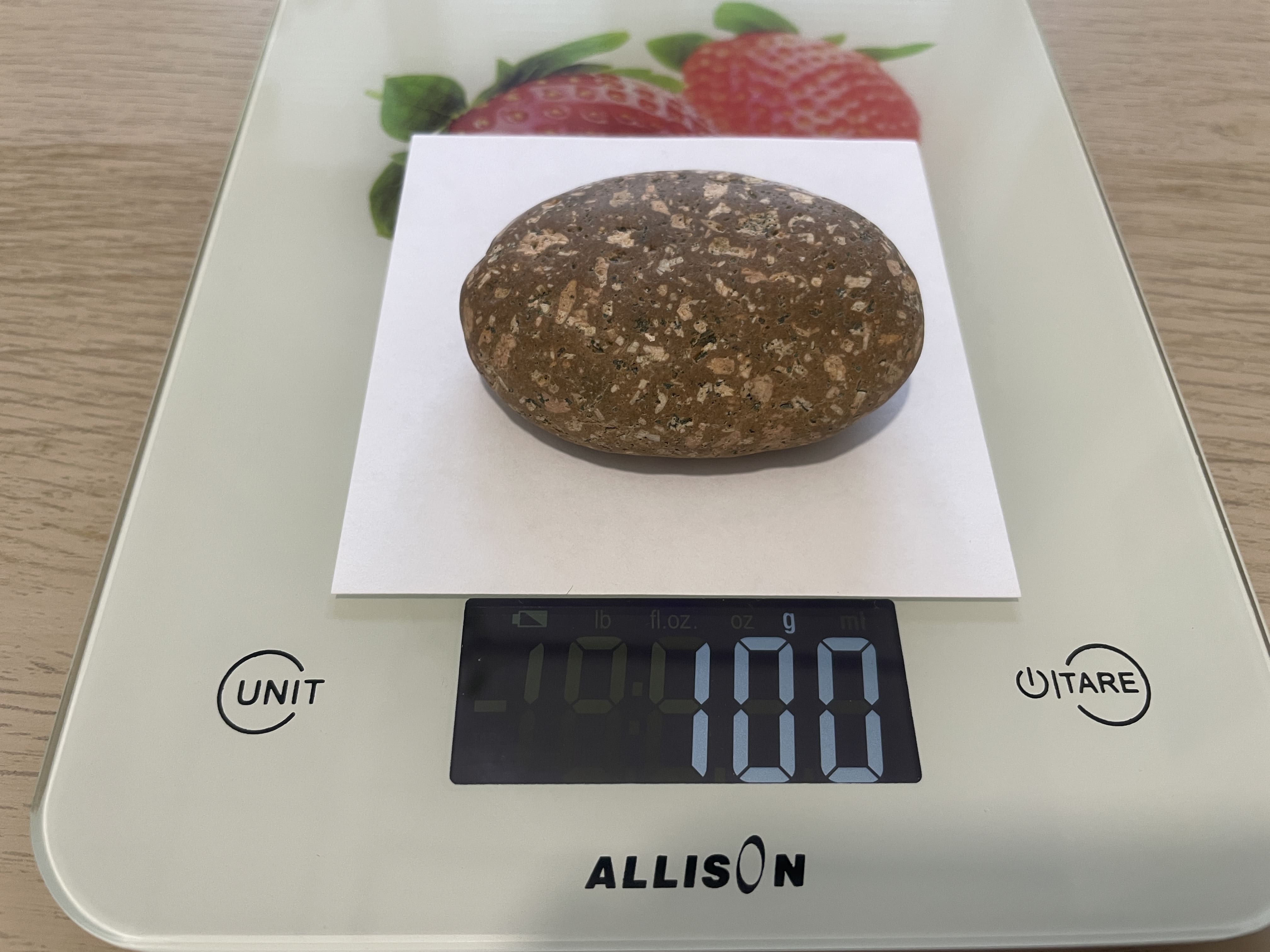- Особые приметы: Его уникальность — в яркой, контрастной россыпи светлых, кремово-бежевых и бледно-розовых зерен, которые словно искры рассыпаны по более темному, коричнево-красноватому основанию. Это выглядит как звездная карта на фоне земной коры.