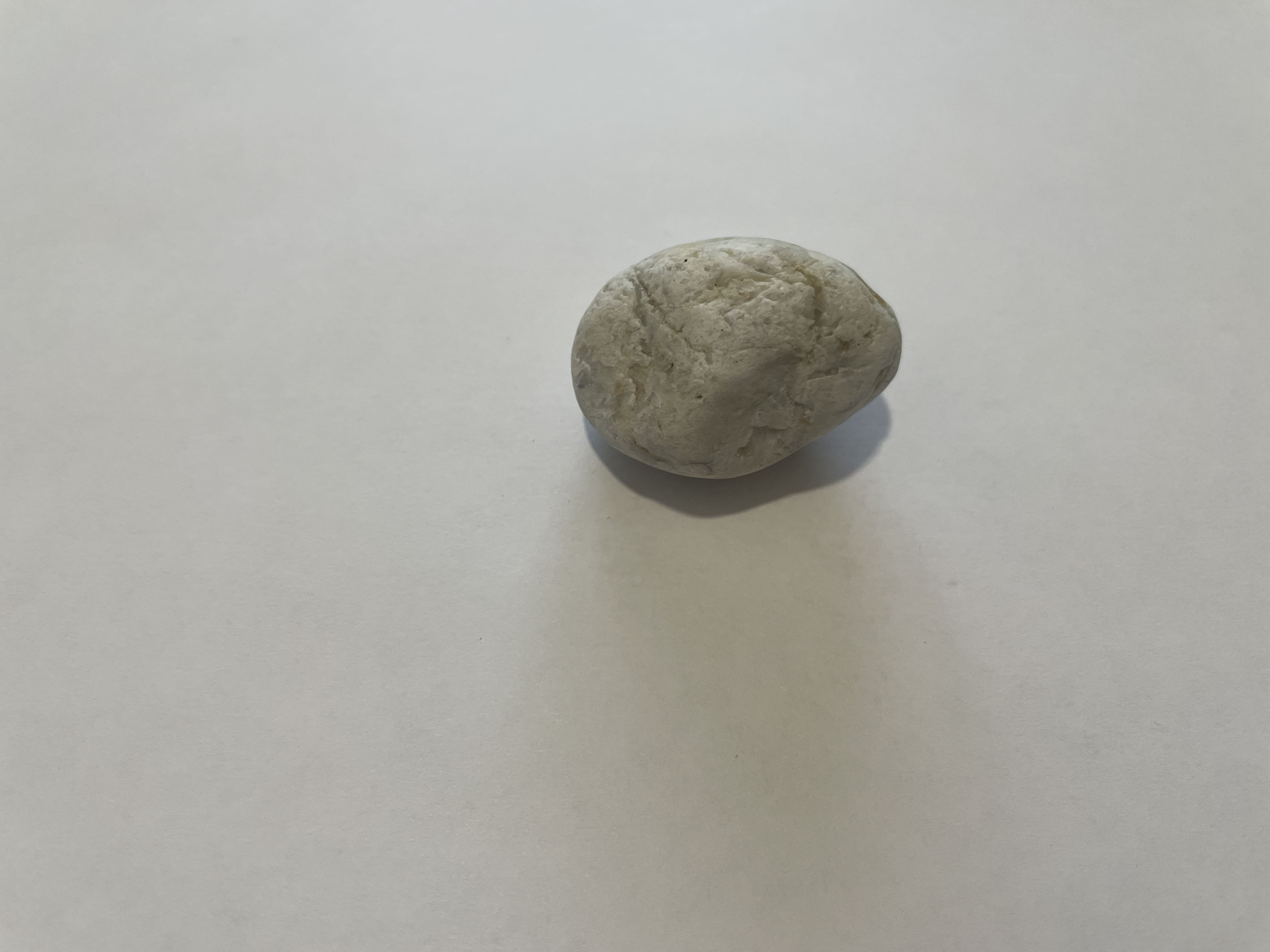 - Форма: Камень имеет пухлую, округлую форму, напоминающую комочек древней мудрости или идеально обточенный кусок сахара. Его контуры мягкие, без острых углов, что говорит о долгой и ласковой работе воды.